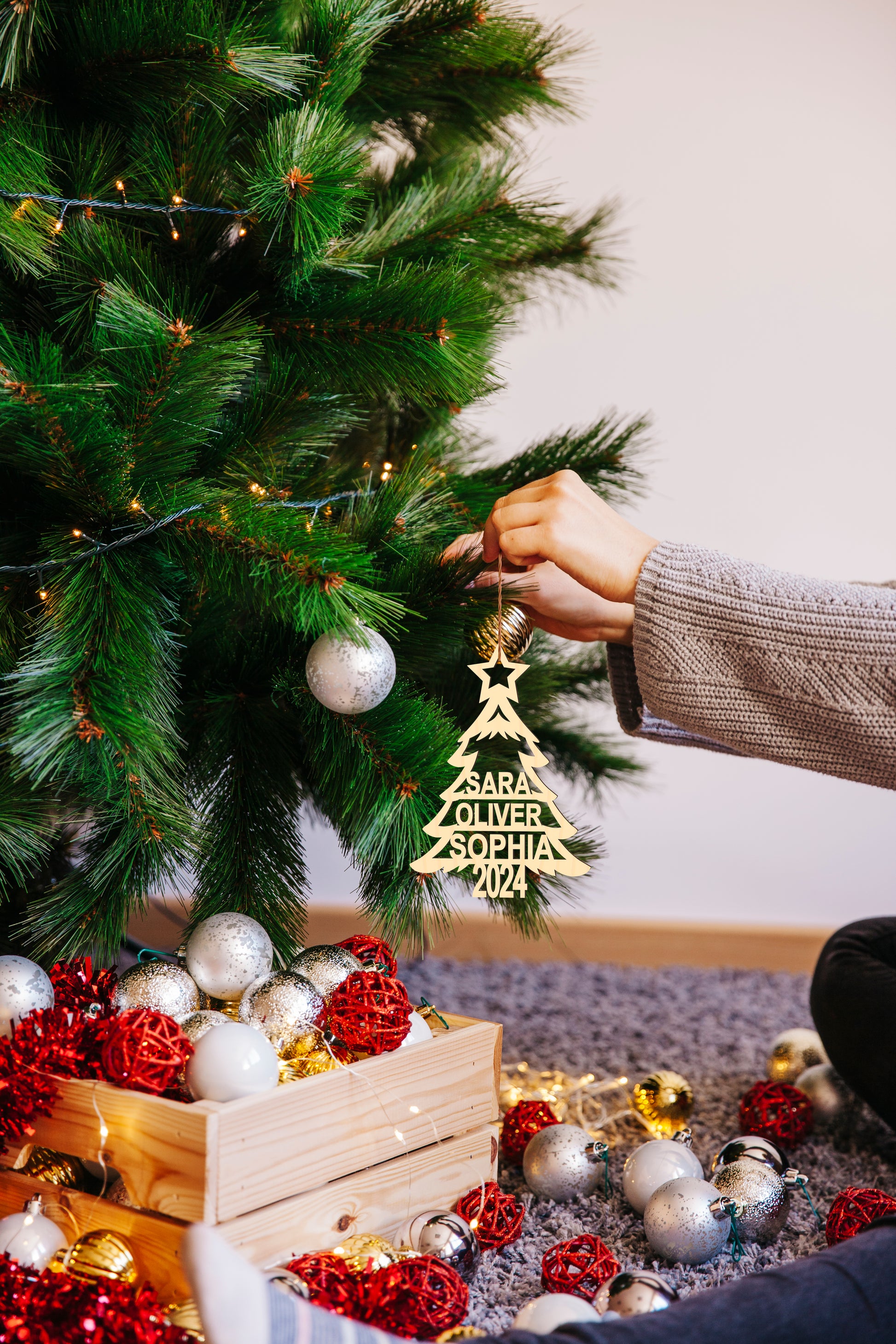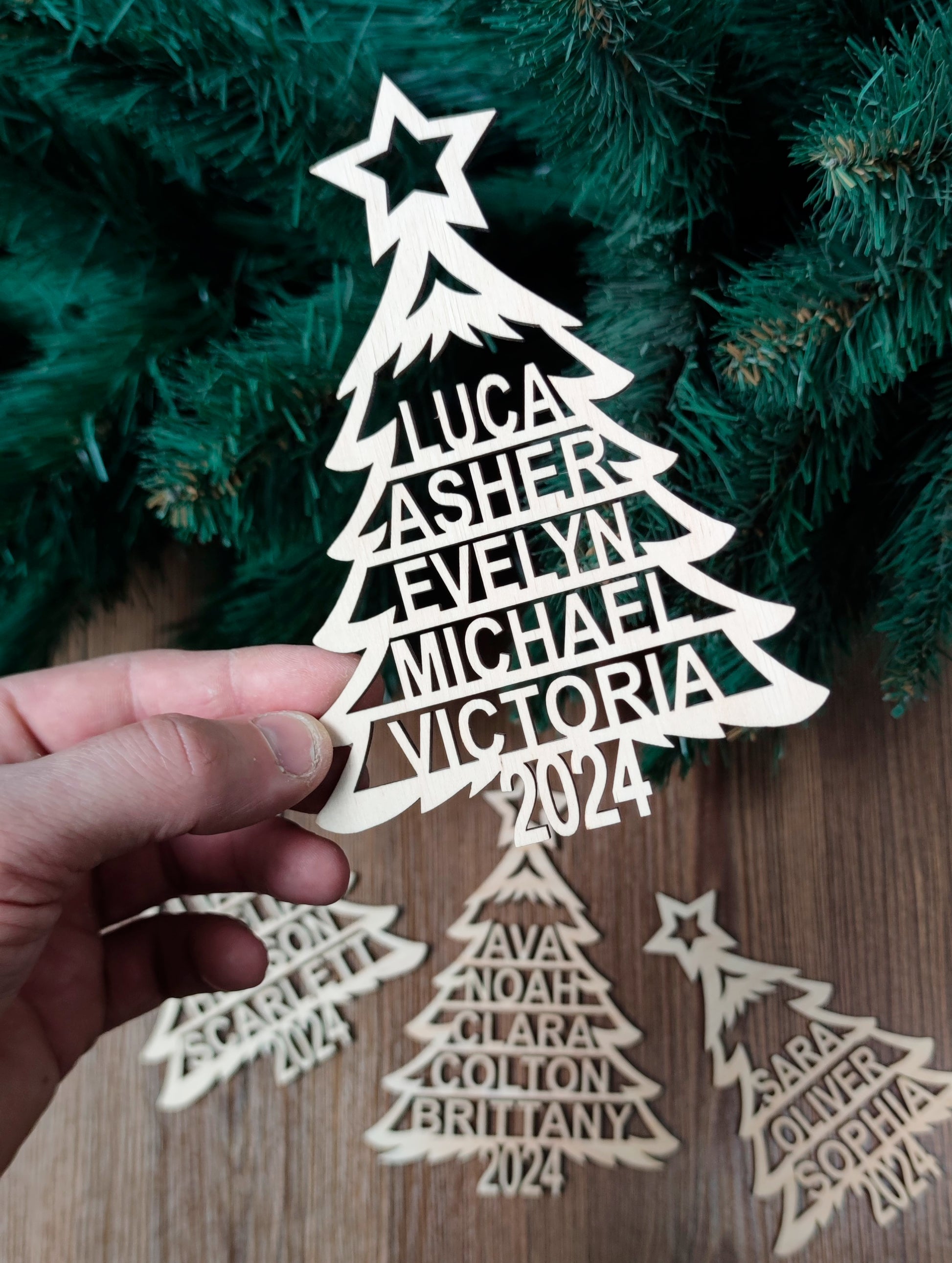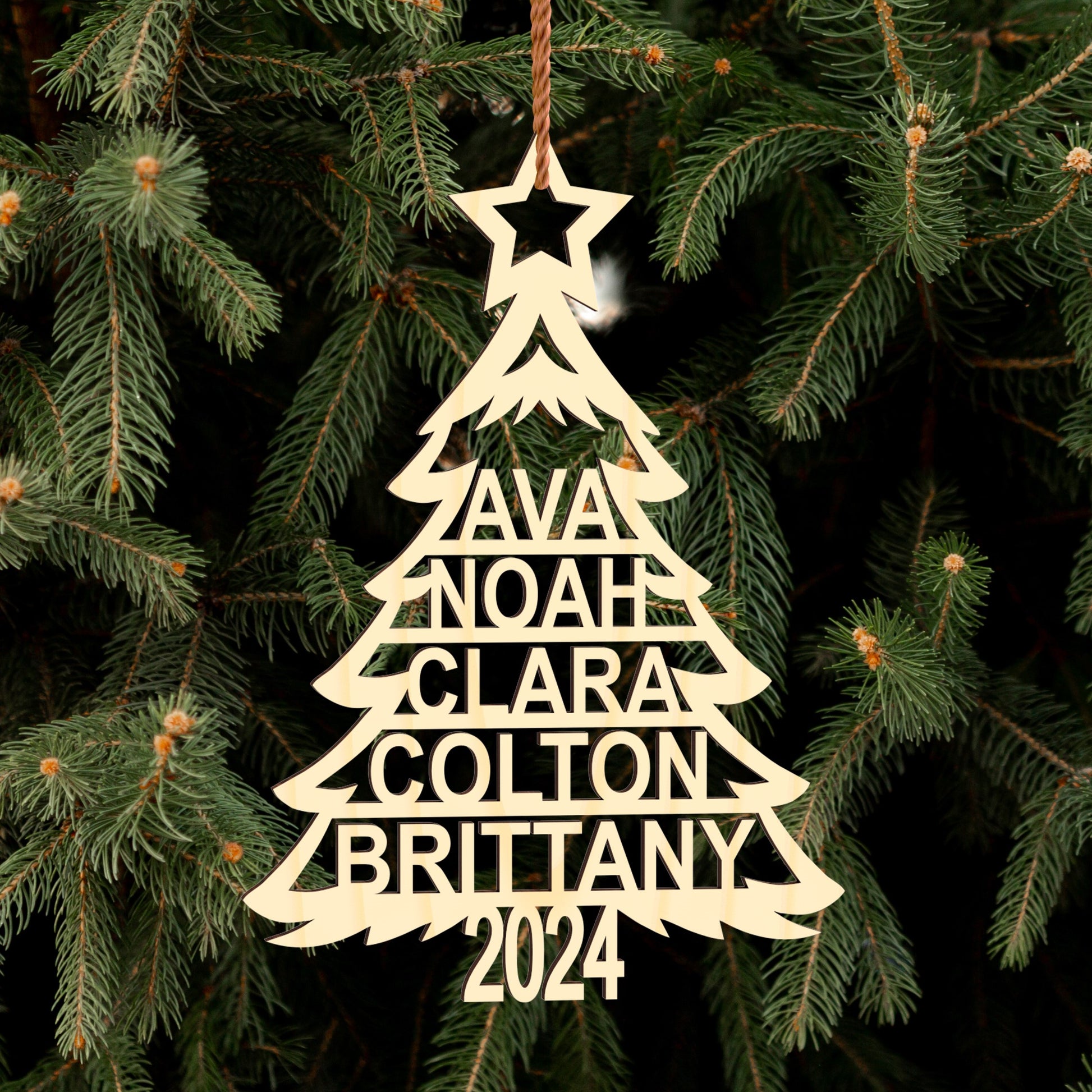 Family Christmas Ornaments 2024 Up to 8 Names Wooden Personalized Ornaments with Names