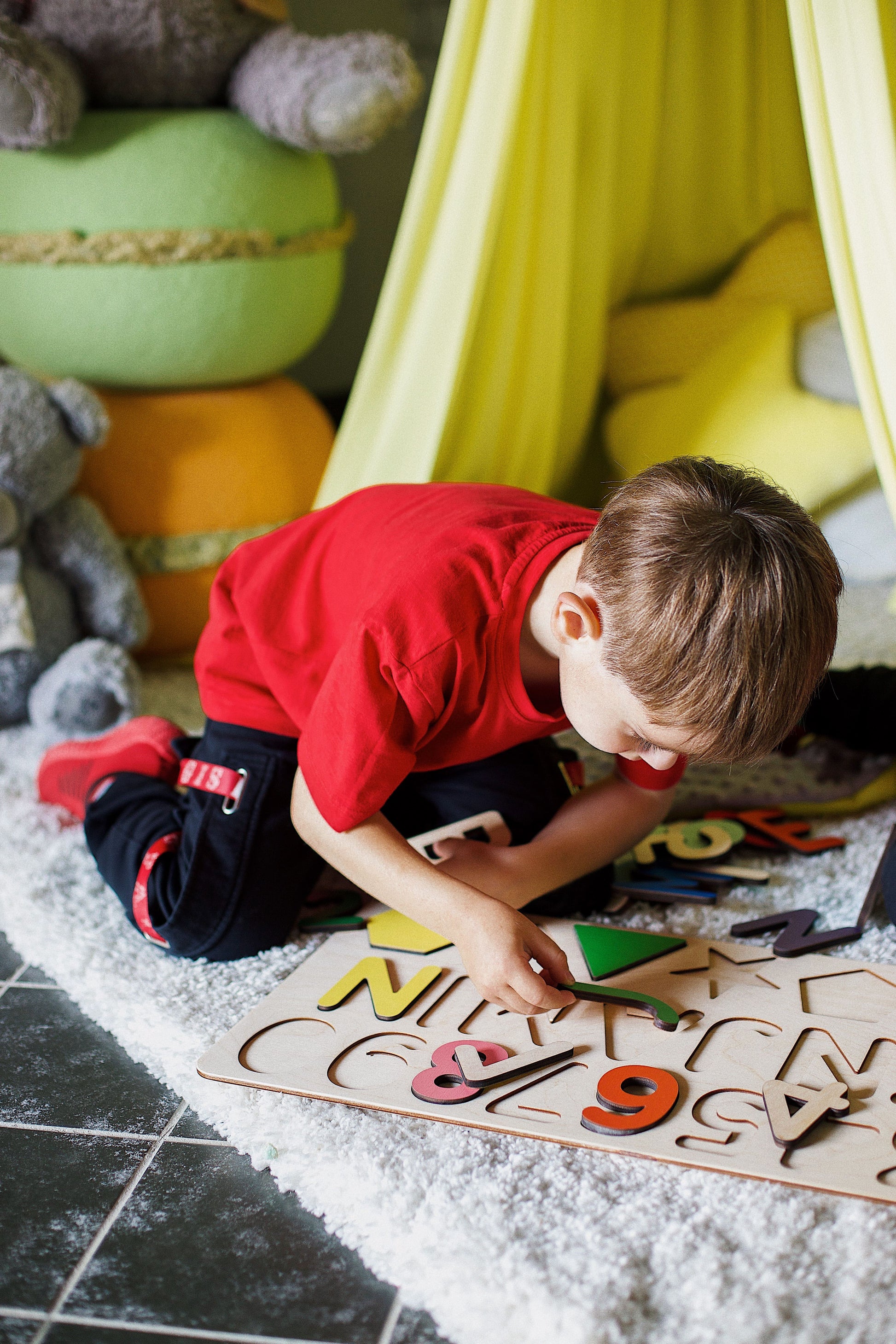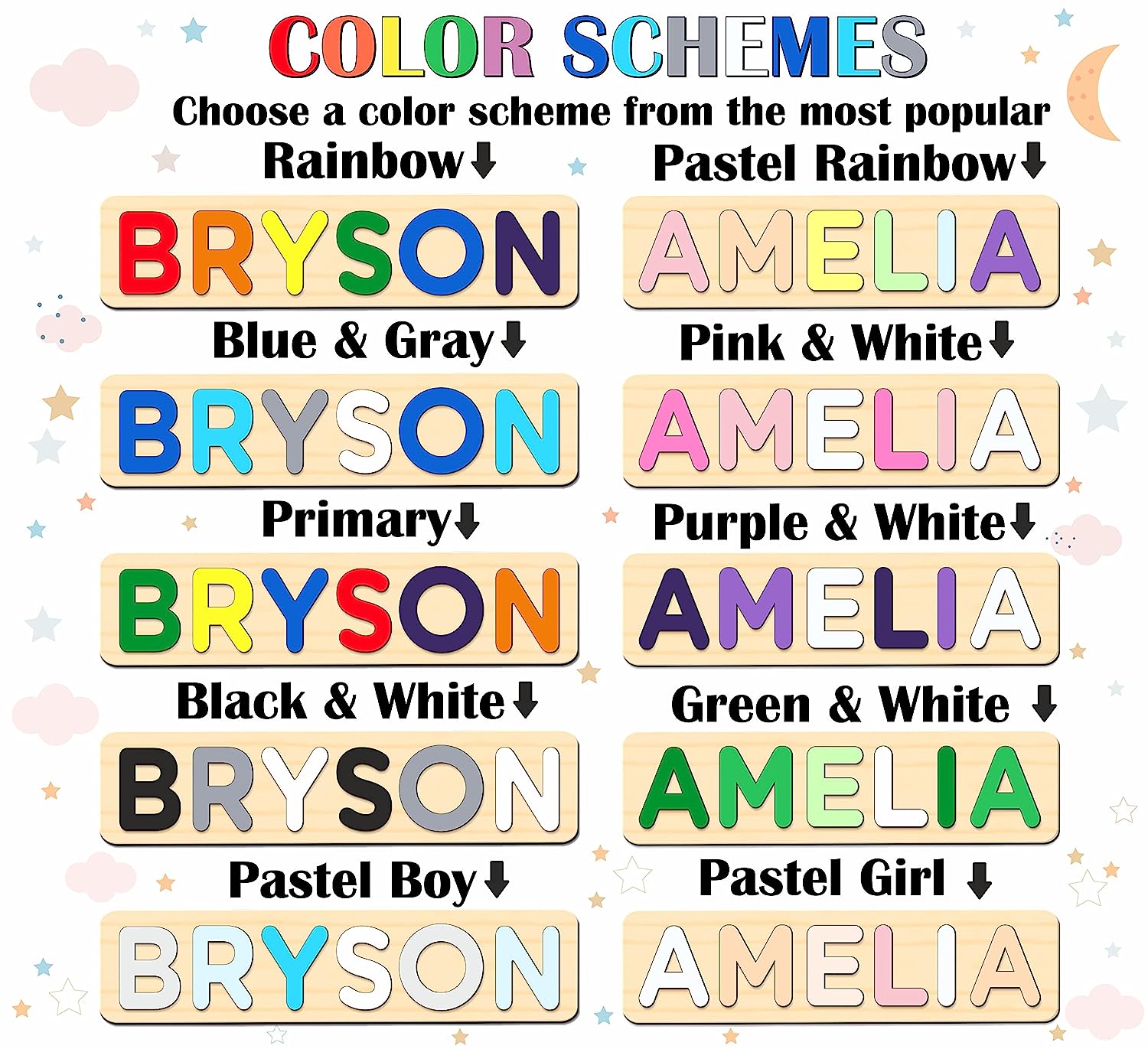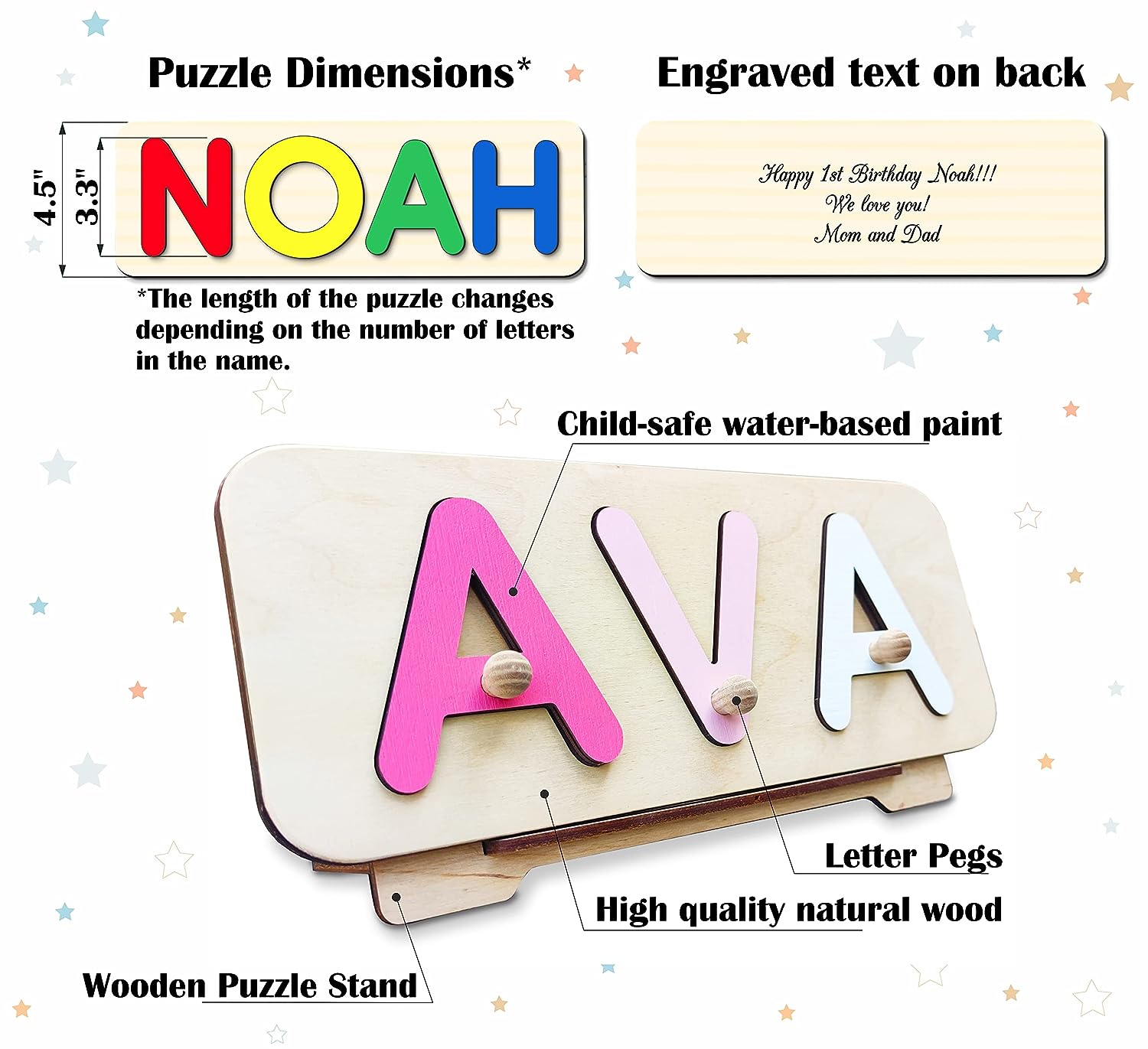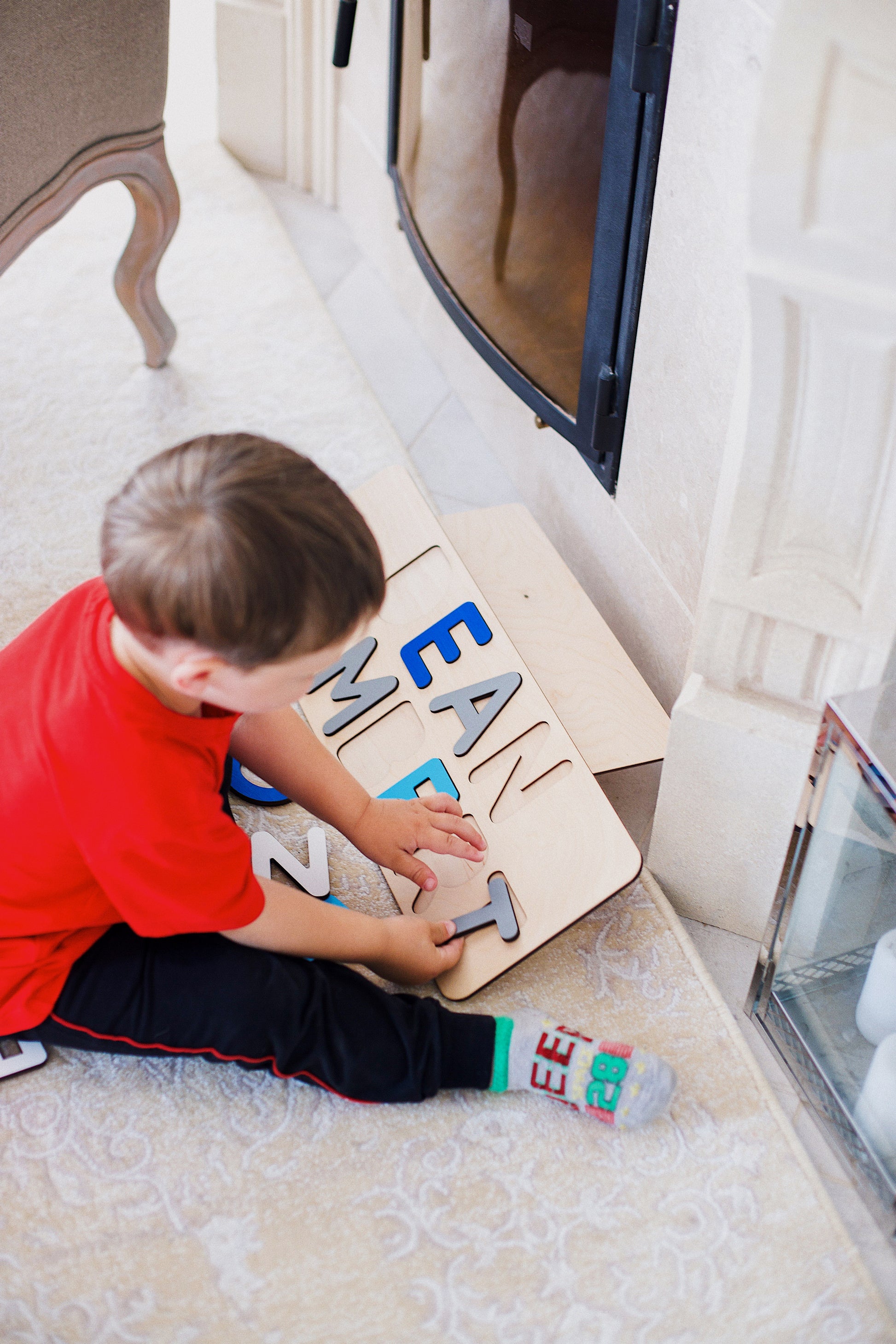 USEFUL LEARNING TOY A personalized name puzzle is a hand-made toy that combines the Montessori technique, helping toddlers learn how to spell their names, learn colors, and develop motor skills.